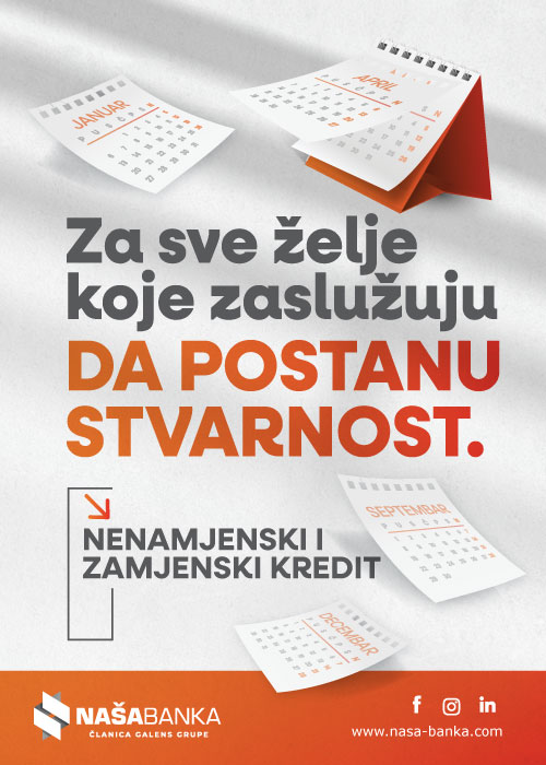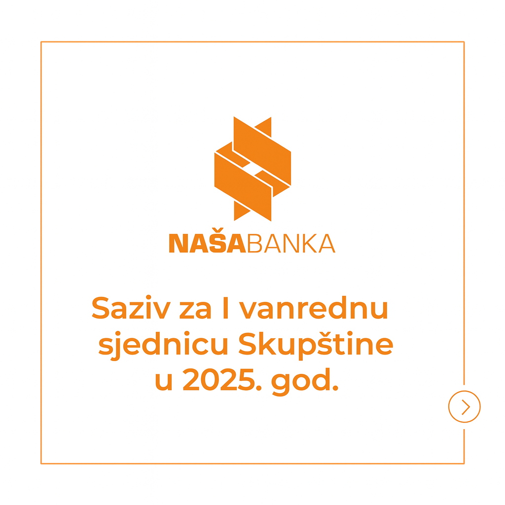 OBAVJEŠTENJE: Poštovani klijenti, u cilju sprečavanja širenja zaraze virusom korona, a prateći upustva i naloge svih nadležnih organa u oblasti zdravstvene zaštite, te vodeći računa o zdravlju klijenata i zaposlenih, obavještavamo vas da je NAŠA BANKA A.D. BIJELJINA preduzela sljedeće mjere: • pojačana higijenska zaštita unutar poslovnica, posebno šalter sala; • ograničen broj klijenta koji istovremeno mogu biti u poslovnicama (u filijalama i ekspoziturama do 5 klijenta, a u agencijama do 3); • poštovanje razmaka između klijenata od minimalno 1 metar; • prednost pri ulasku imaju starija lica, invalidi, trudnice i majke s djecom; Takođe, apelujemo na klijente da značajnije koriste digitalne servise platnog prometa, odnosno internet i mobilno bankarstvo kao i da se sva plaćanja, gdje god je to moguće, vrše putem platnih kartica kako bi se smanjilo korišćenje gotovine (novčanica i kovanica) kao potencijalnog izvora zaraze, te lični kontakt i boravak u poslovnicama sveo na najmanju moguću je